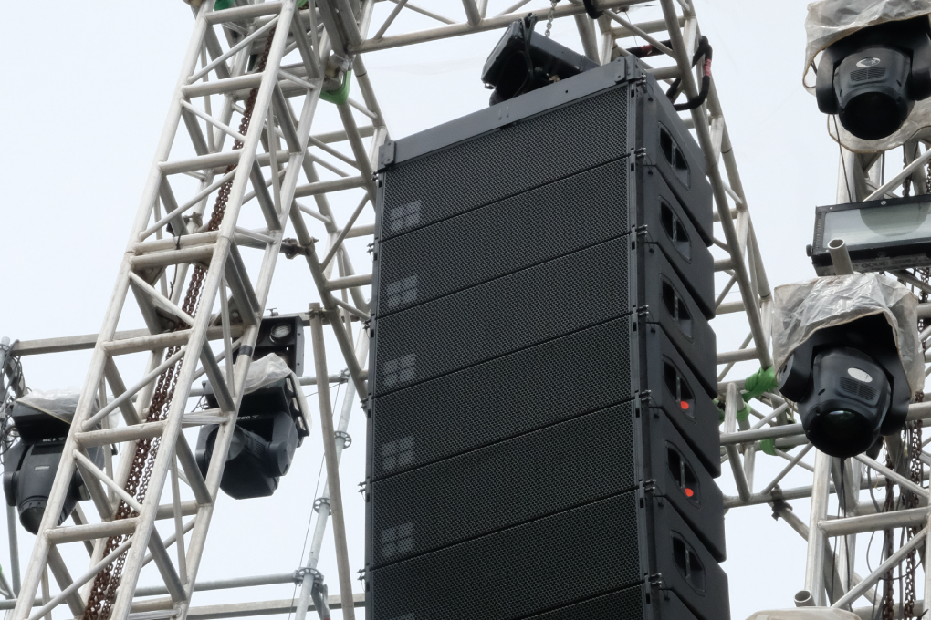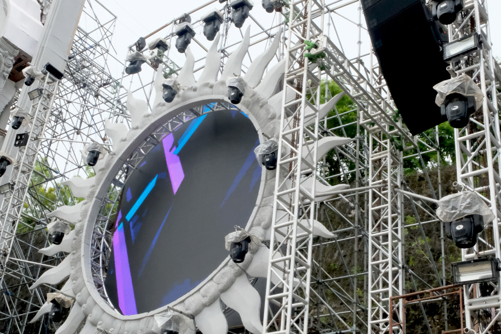 lighting desk, led screen display, processor, electric motors, truss and stage
